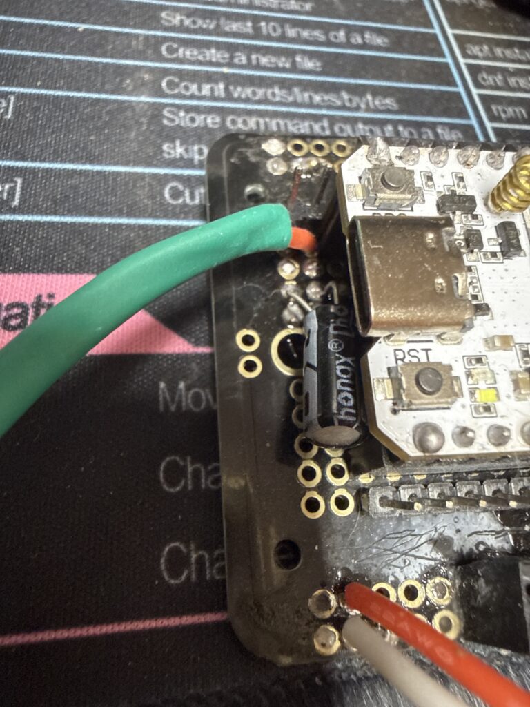 15/12/2025 – Stray voltage problem solved! There was the tiniest sliver of solder bridging these two points on the PCB that separate the top power bus from the bottom one we are using for higher voltage. It was almost invisible! Going to spend some time reading the code and getting familiar with it again!